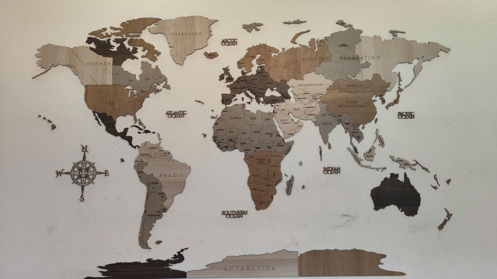 Công nghệ khắc laser chính xác tuyệt đối – Từng đường biên, tên quốc gia, thành phố hiển thị rõ ràng, tinh tế.