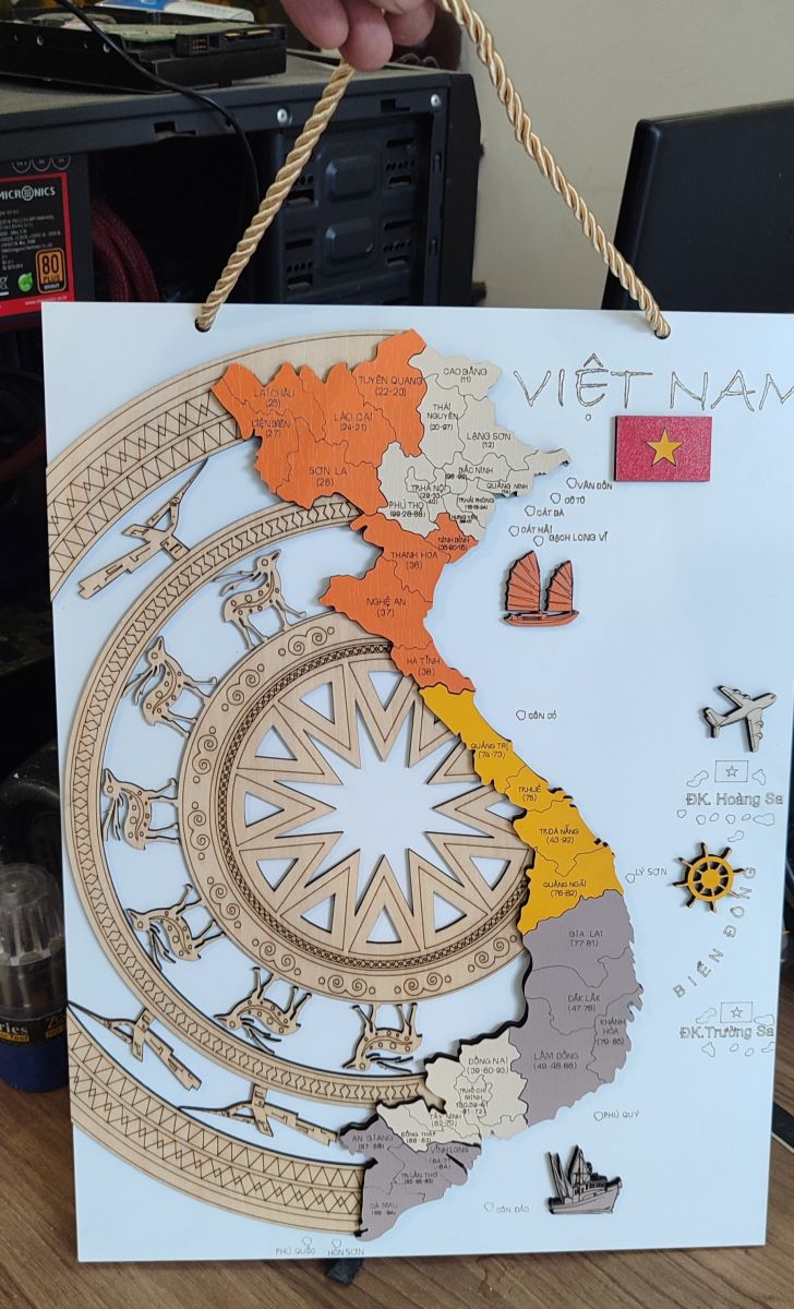Bản đồ treo tường được chế tác bằng công nghệ khắc laser hiện đại, mang đến từng đường nét sắc sảo, chi tiết và bền đẹp theo thời gian. Đây không chỉ là vật trang trí, mà còn là một tác phẩm nghệ thuật đầy ý nghĩa.