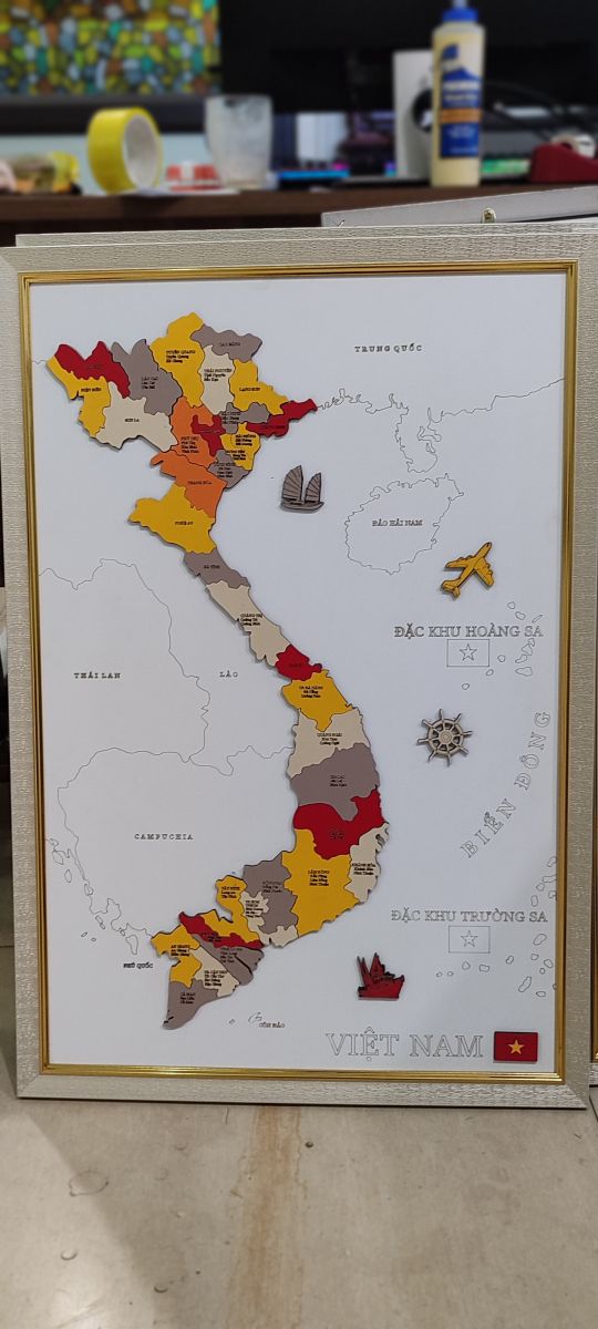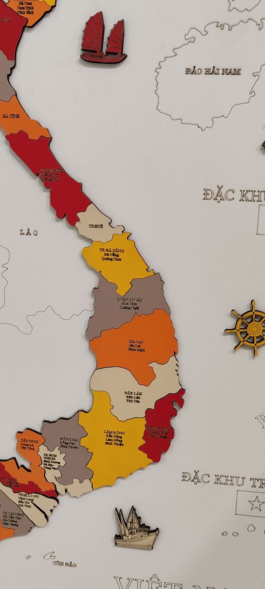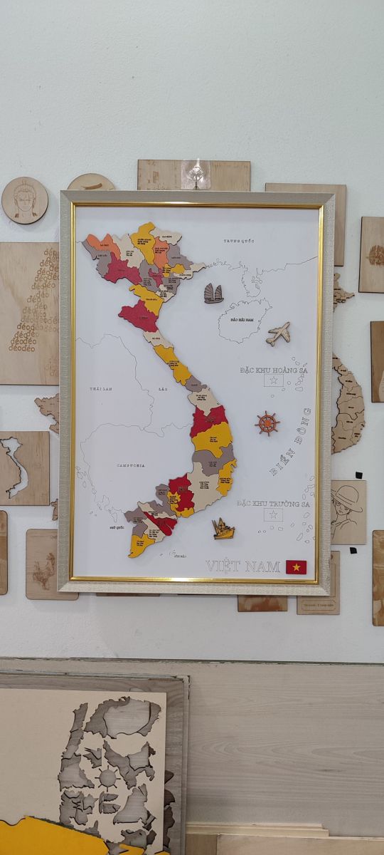 Bản đồ treo tường được chế tác bằng công nghệ khắc laser hiện đại, mang đến từng đường nét sắc sảo, chi tiết và bền đẹp theo thời gian. Đây không chỉ là vật trang trí, mà còn là một tác phẩm nghệ thuật đầy ý nghĩa.