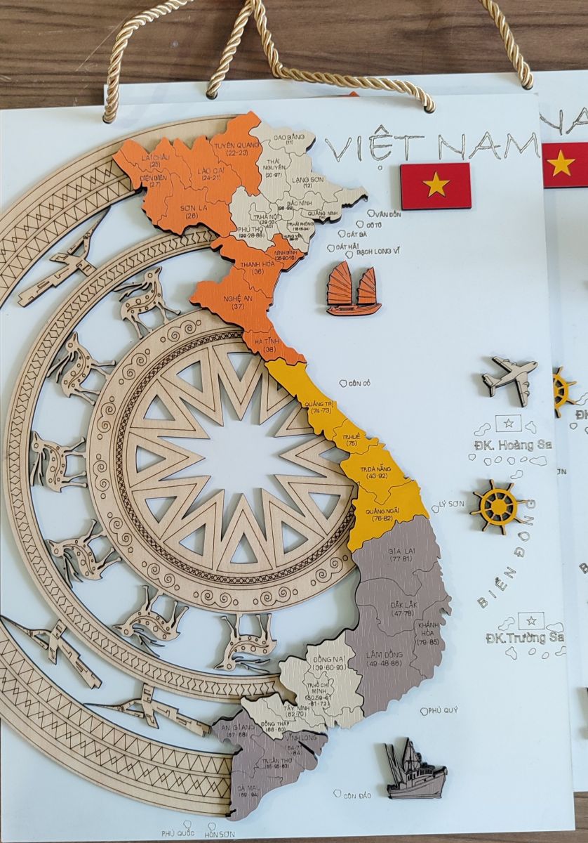 Bản đồ treo tường được chế tác bằng công nghệ khắc laser hiện đại, mang đến từng đường nét sắc sảo, chi tiết và bền đẹp theo thời gian. Đây không chỉ là vật trang trí, mà còn là một tác phẩm nghệ thuật đầy ý nghĩa.