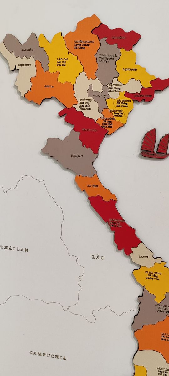 Bản đồ treo tường được chế tác bằng công nghệ khắc laser hiện đại, mang đến từng đường nét sắc sảo, chi tiết và bền đẹp theo thời gian. Đây không chỉ là vật trang trí, mà còn là một tác phẩm nghệ thuật đầy ý nghĩa.